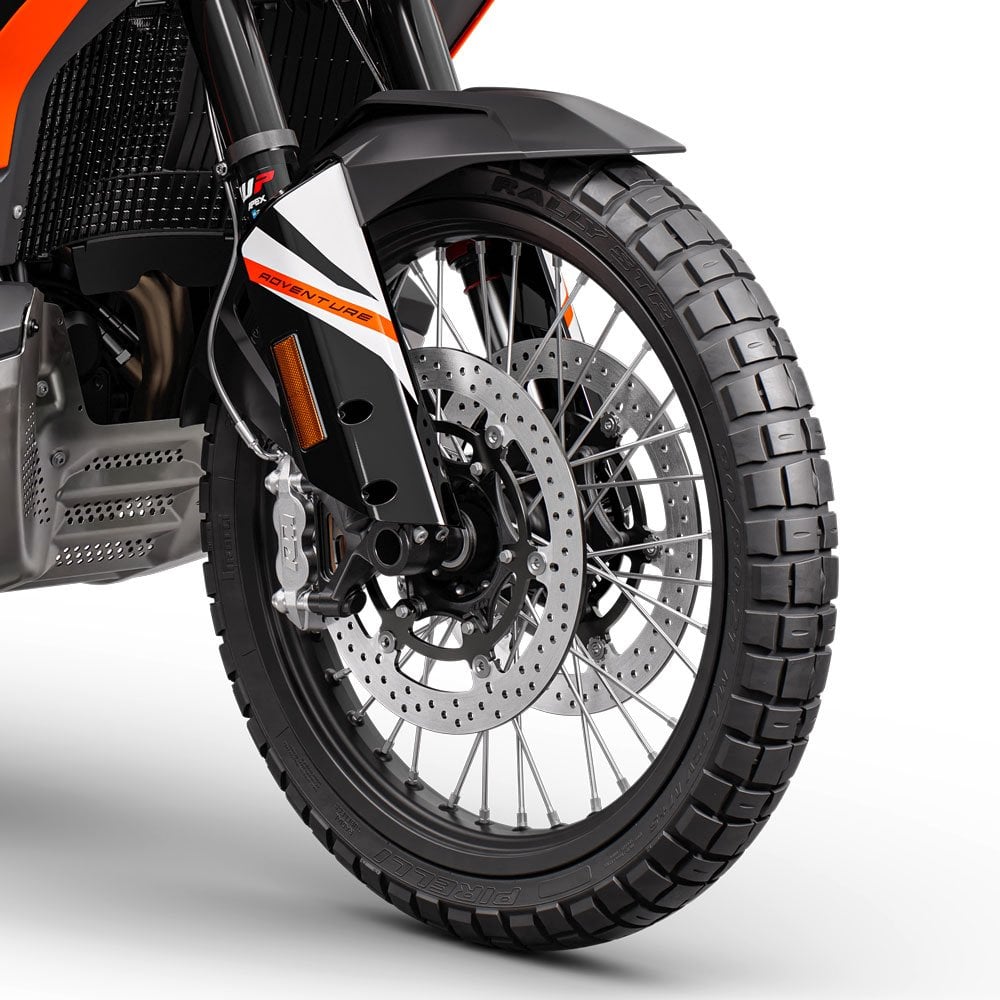 - 2023 KTM 890 ADVENTURE yeni, offroad odaklı PIRELLI SCORPION STR lastiklerle donatılmıştır. Bunlar, yolda dayanıklılık, yol tutuşu ve kilometre performansı arayan sürücüler için idealdir, ancak offroad pistlerini ve patikaları kolaylıkla fethetme avantajına sahiptir.
