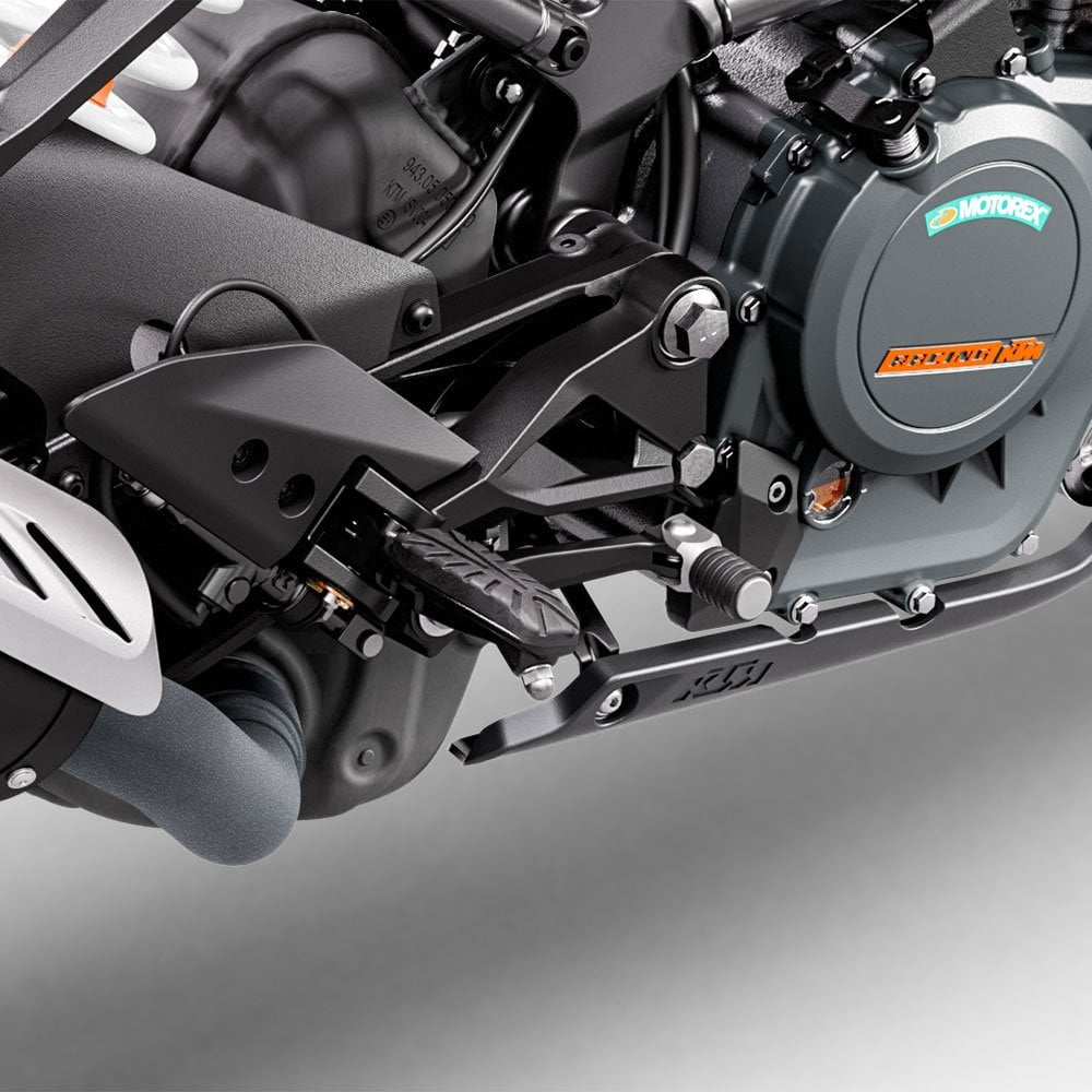 - Katlanır ayak kolları, düşme durumunda istenmeyen kırılmaları önler, aynı zamanda büyük yatış açılarında pegleri sıyırmanız durumunda motosikletin çevrimiçi ve bozulmadan kalmasını sağlar.