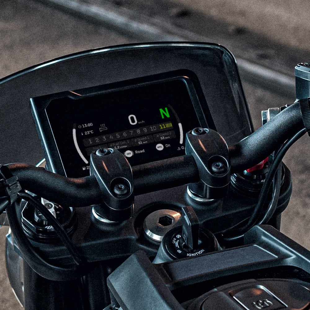 Offroad tarzı gidonlar ve yükselticiler şık, dövme alüminyum üçlü kelepçelerle birlikte takılmıştır. Otantik tasarımın minimalist görünümüne uygun olarak gidona monte edilmiş gösterge panelinde hız, yakıt seviyesi, sürüş modu ve seçilen vites gibi temel bilgileri gösteren büyük bir 5'' TFT ekran bulunmaktadır.